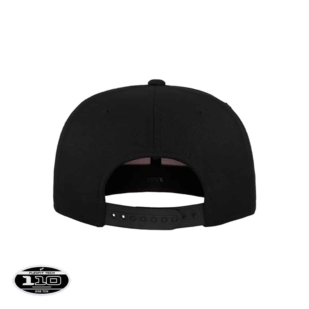 Jockey Snapback 110F Visera Plana Premium copa alta con elastico interior y broche.